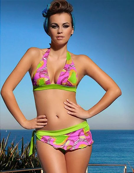 Pokud léto znamená vodu, dovolenou a sluníčko! Pokud sluníčko znamená trojdílné plavky v líbivých, ženských barvách. Tyto plavky jsou vyrobeny z kvalitní italské látky, díky které jsou měkké a velmi pohodlné. Trojúhelníkové košíčky jsou vyztužené a vyjímatelné, ramínka se zavazují za krkem a obvod se zavazuje na zádech. Mini pareo navazuje na vzor na podprsence a je samostatnou součástí plavek. Spodní díl je hladký, pohodlný a má osvědčený, klasický tvar. Složení: 80 % polyamid, 20 % elastan.