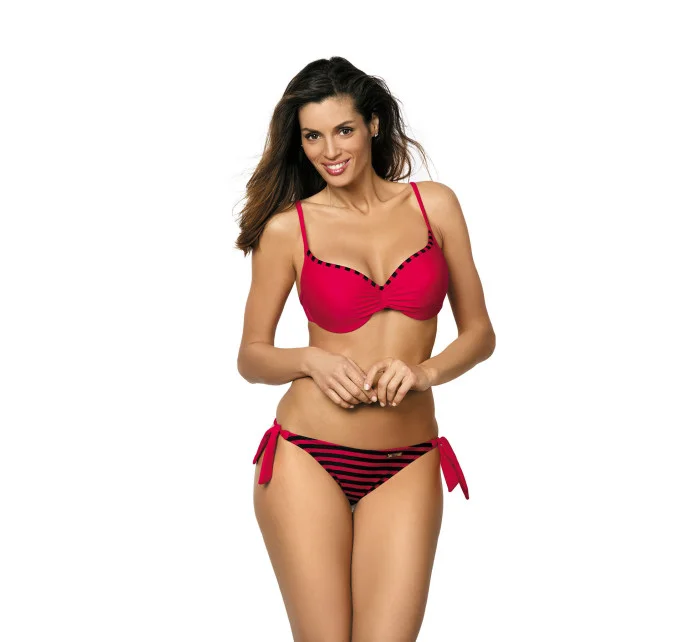 Hladká, nadčasová podprsenka s ozdobným lemováním kolem výstřihu a sexy, na obou stranách zavazovaným spodním dílem boků, tentokrát s módními proužky. Plavky Maya M-359 jsou rozhodně hitem sezóny!