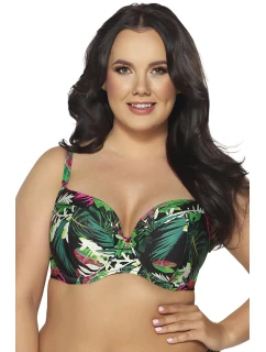 Černá elastická ramínka ve výstřihu, ozdobné lemování pod poprsím, proužky na bocích, květy a vysoký spodní díl, který vám zaručí naprosté pohodlí, a to není všechno... Podprsenka má vyztužené košíčky s push-upem, díky nimž můžete krásně shrnout a vymodelovat svá ňadra a krásně je prezentovat ve výstřihu. Push-up je v modelu umístěn napevno, z plavek se nevyjímá a je v každé velikosti. Podprsenka se zavazuje jako bikiny - na zádech a za krkem. Květinový vršek krásně doplňuje hladký spodní díl. Krásné barvy a italská látka nejvyšší kvality. To je ono!