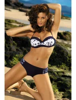 Efektní námořnicky modré a bílé plavky, díky kterým na pláži vyniknete. V módních barvách, vyrobené z velmi zajímavé látky s hvězdičkami. Podprsenka má speciálně tvarované košíčky s permanentní push-up výplní, která svůdně pozvedne a smyslně vytvaruje ňadra. Ramínka v podobě tvarovaných tenkých gumiček jsou zcela odepínací. Model bude ideální i na opalování. Podprsenka se zavazuje na zádech.