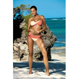 Novinka! Fenomenální dvoudílné plavky se zkroucenými košíčky pro velmi přirozený efekt pevných, zvednutých a opticky zvětšených prsou. Náš favorit v této kolekci! Zespodu vyztužené, s push up vycpávkami, s bočními velrybími kosticemi. Ramínka nastavitelná, s možností jejich úplného odepnutí (můžete si rovnoměrně opálit tělo). Obvod se zapínáním na přezku. Rajské barvy. Spodní díl velmi zajímavého střihu - s průstřihy na bocích, velmi dobře sedí a pěkně tvaruje boky. Jsou podšité, neprosvítají a mají perfektní výšku.