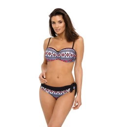 V tomto vydání je kostým dvoudílný, barevný a velmi sexy. Podprsenka má vyztužené košíčky s kosticemi a push-up a její střih připomíná známé a oblíbené bardotky. Dovedně shromažďuje a zvedá prsa, čímž je opticky zvětšuje. Push-up se dodává v každé velikosti plavek a není z modelu snímatelný. Popruhy lze z modelu zcela odejmout. Díky zavazovacímu lemu si můžete kostým upravit tak, aby vám dokonale padl. Kalhotky s ozdobným zavazováním na bocích, s klasickým, vsazeným, velmi pohodlným střihem. Složení: 80 % polyamid, 20 % elastan.