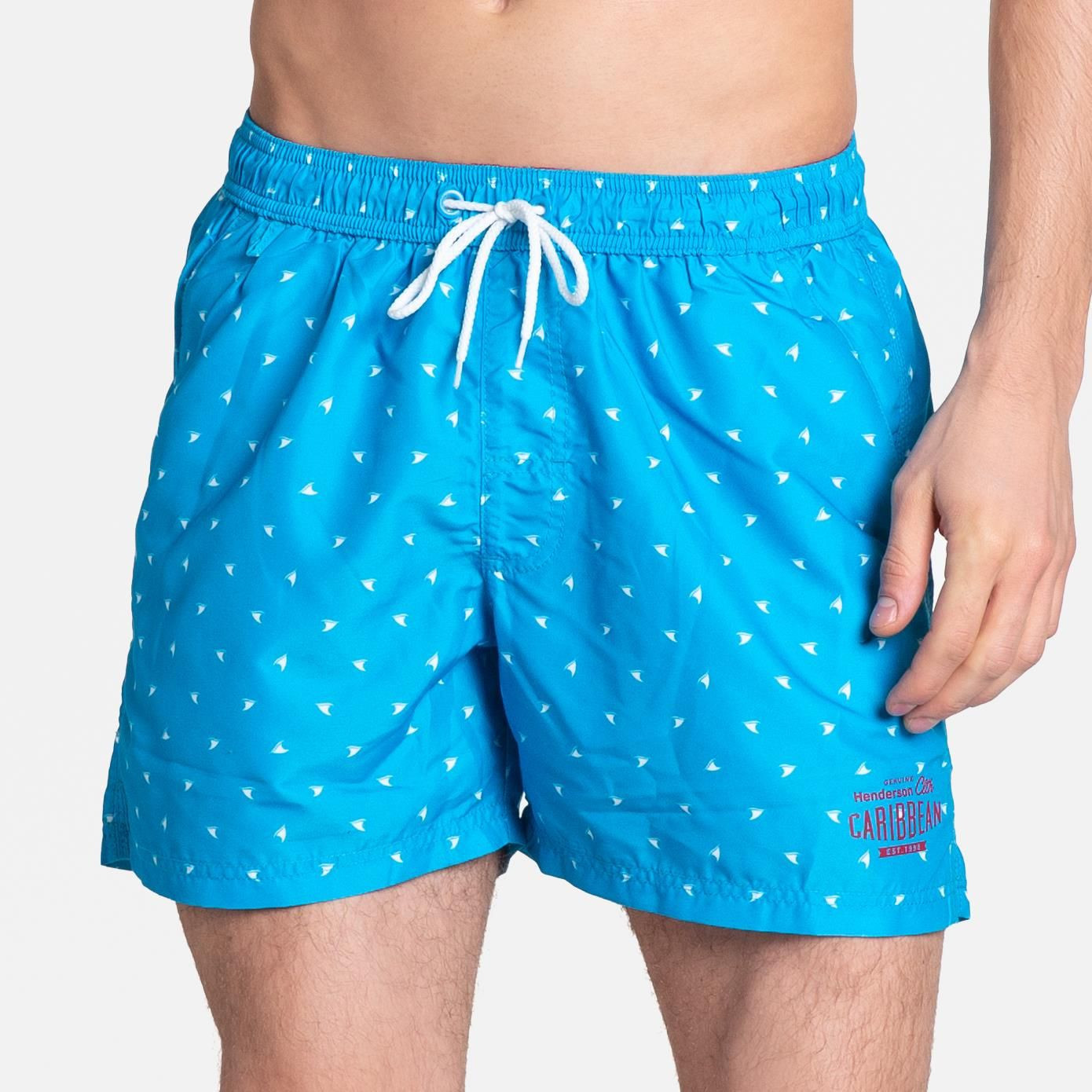 Velmi pohodlné plavecké šortky s volnou podšívkou z nejnovější kolekce Henderson, edice Léto 2021. Vynikají skvělou modrou barvou (v krásném odstínu) pokrytou jemným vzorem. Pohodlný střih: pohodlný, pružný, měkký elastický pas s dodatečnou šňůrkou pro nastavení obvodu. Rychleschnoucí tkanina. Zadní kapsa s poutkem na opasek. Složení: 100% polyester.