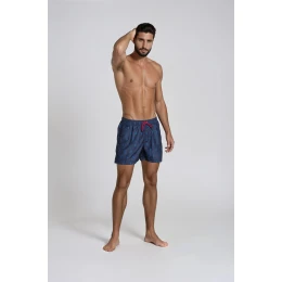 Pohodlné pánské plavky z nejnovější kolekce značky Henderson. Módní barva, vyrobené z rychleschnoucí tkaniny s jemným námořnickým vzorem. Skvělé pro plážové sporty i běžné procházky, velmi pohodlné. Uvnitř podšité. Dvě kapsy na bocích, třetí vzadu s poutkem na pásek. 100% polyester.