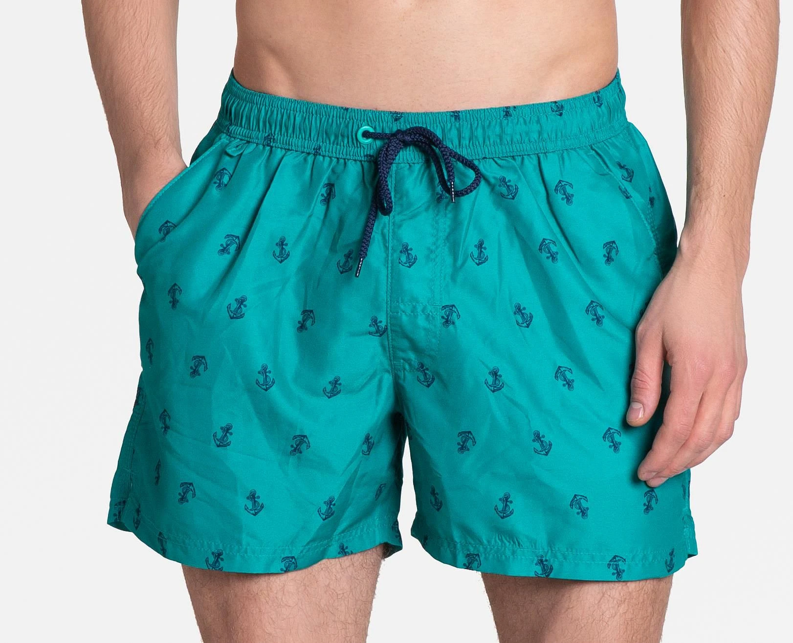 Pohodlné pánské plavky z nejnovější kolekce značky Henderson. Je vyrobena z rychleschnoucí tkaniny pokryté jemným námořnickým vzorem v trendy barvě. Skvělé pro plážové sporty i běžné procházky, velmi pohodlné. Vnitřní podšívka. Dvě na bocích, kapsy, třetí vzadu, s poutkem. Složení: 100% polyester.