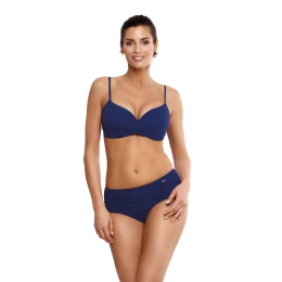 Vyrobeno z italské hladké matné tkaniny nejvyšší kvality. Identifikuje ženskost a nadčasový styl. Podprsenka má dobře tvarované, vyztužené košíčky s kosticemi, které skvěle shromažďují a tvarují prsa. Střih pěkně shrnuje, nadnáší a udržuje poprsí v atraktivní pozici. Velikosti 40/C a 42/D mají navíc push-up výplň, která je trvale umístěna v podprsence bez možnosti vyjmutí a která u menších velikostí plavek umožňuje mírné zvětšení prsou, čímž zlepšuje tělesné proporce. Ostatní velikosti nemají push-up. Obvod je pohodlně zavázán na zádech. Jsou vyšší než obvykle, jemně zakrývají větší část těla než tradiční nízké kalhoty, vpředu jsou jemně nařasené a velmi pohodlné. Kolekce na léto 2019. Složení: 80 % polyamid, 20 % elastan.