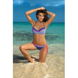 Krásné a velmi tvarované bikiny Wendy, tentokrát s vyztuženou podprsenkou. Žhavý kousek pro tuto sezónu! Podprsenka má boční a spodní kostice, sexy zvedá prsa, udržuje je na svém místě a hlavně má jemnou, pevnou push up výplň - díky tomu prsa vypadají větší. Velikost XXL bez push up, má pouze vyztužené košíčky. Drobné hrášky na látce jsou zvýrazněny chladnými, prázdninovými barvami. Podprsenka se pohodlně zavazuje za krkem i na zádech. Kalhotky jsou velmi tvarované, dodávají pocit pohodlí a zavazují se také na obou stranách boků.