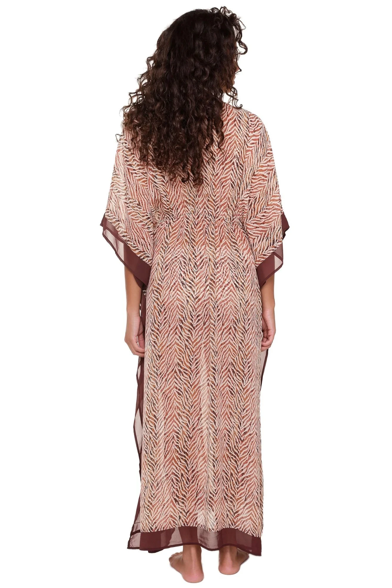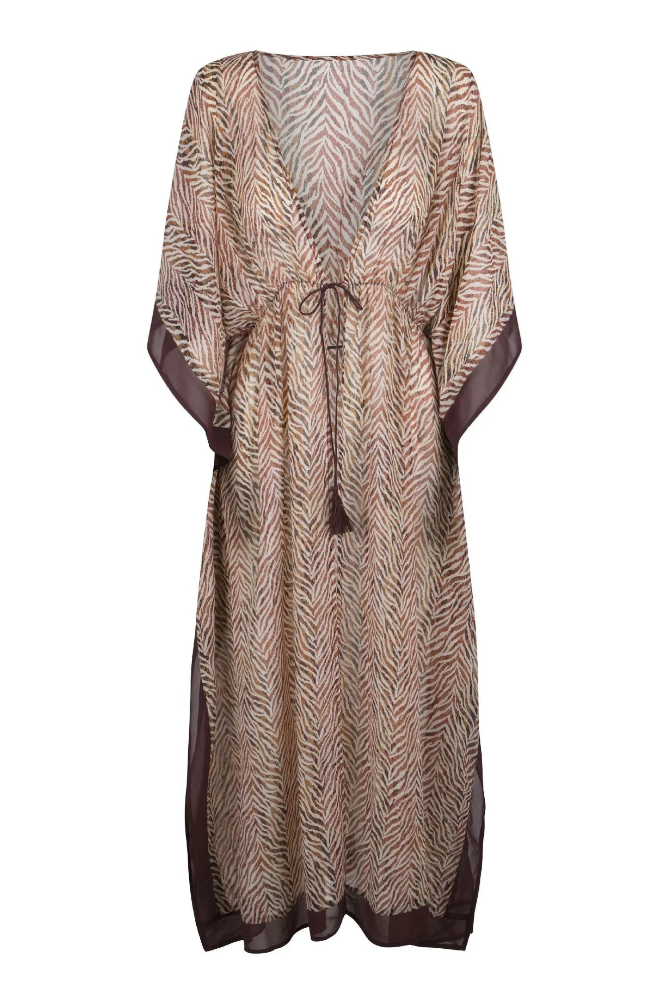 Plážové kimono 7206P LingaDore - zvířecí motiv - zebra - se vzorovaného šifónu - rozšířené rukávy - zavazování v paseMateriálové složení: 91% polyester + 9% elastan