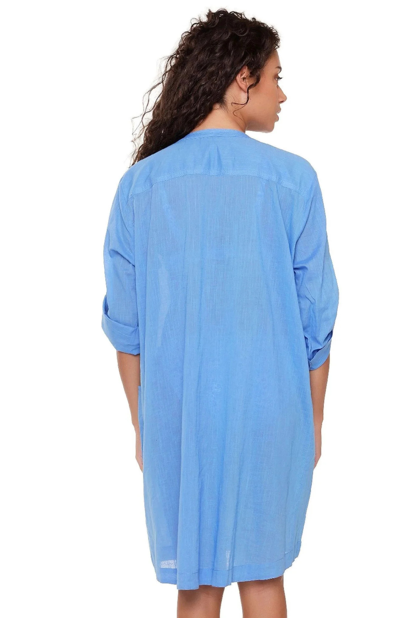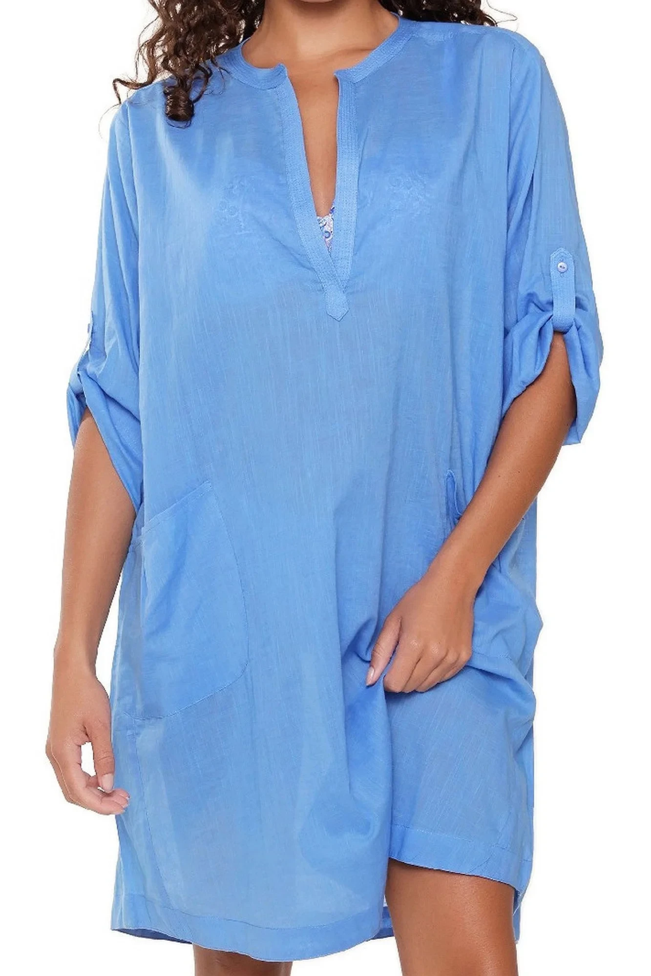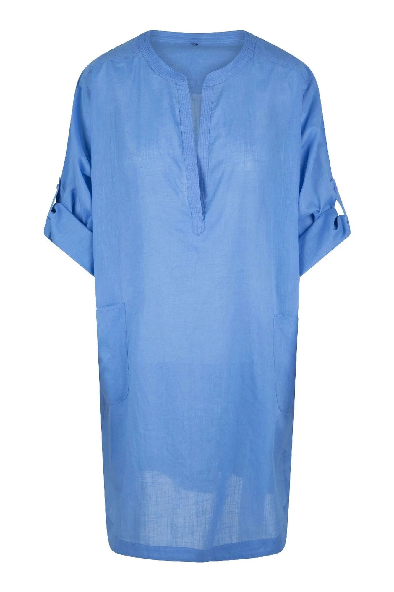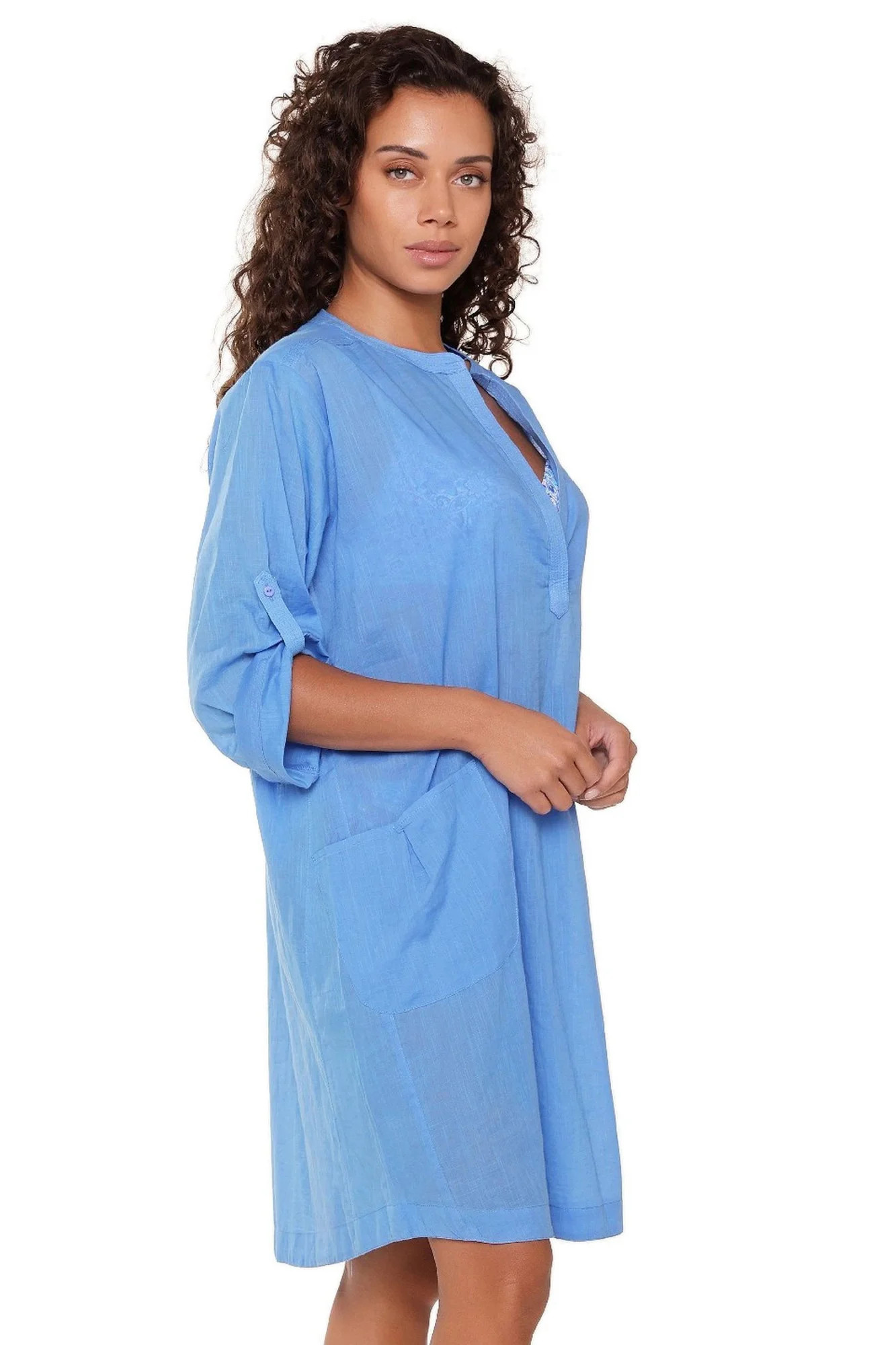 Plážové šaty 7225 blue LingaDore - světle modrá barva - z vysoce jakostní viskózy - tříčtvrteční rukávy - výstřih ve tvaru "V" - na bocích kapsy