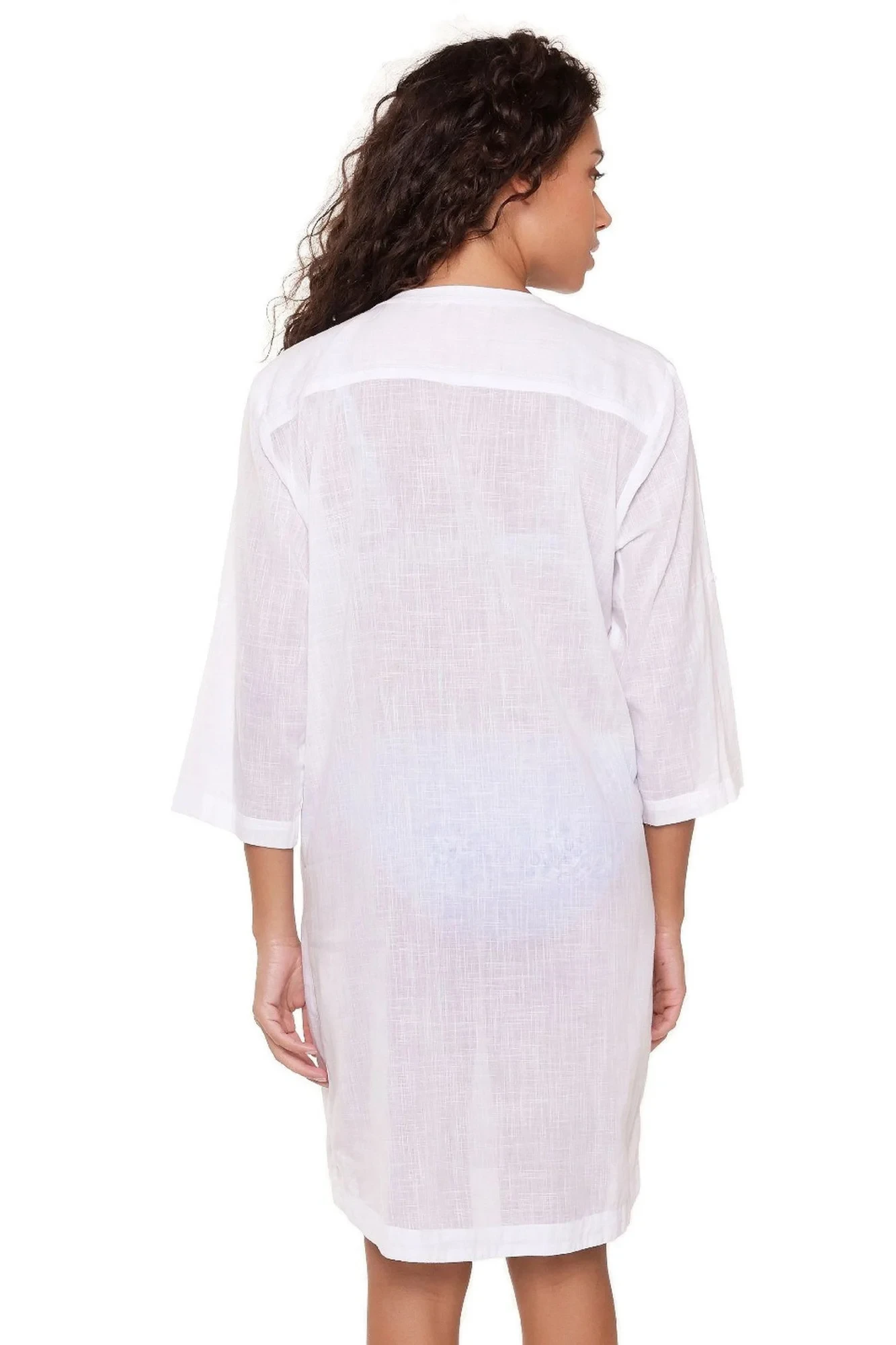 Plážové šaty 7225 white LingaDore - bílá barva - z vysoce jakostní viskózy - tříčtvrteční rukávy - výstřih ve tvaru "V" - na bocích kapsyMateriálové složení: 100% viskóza