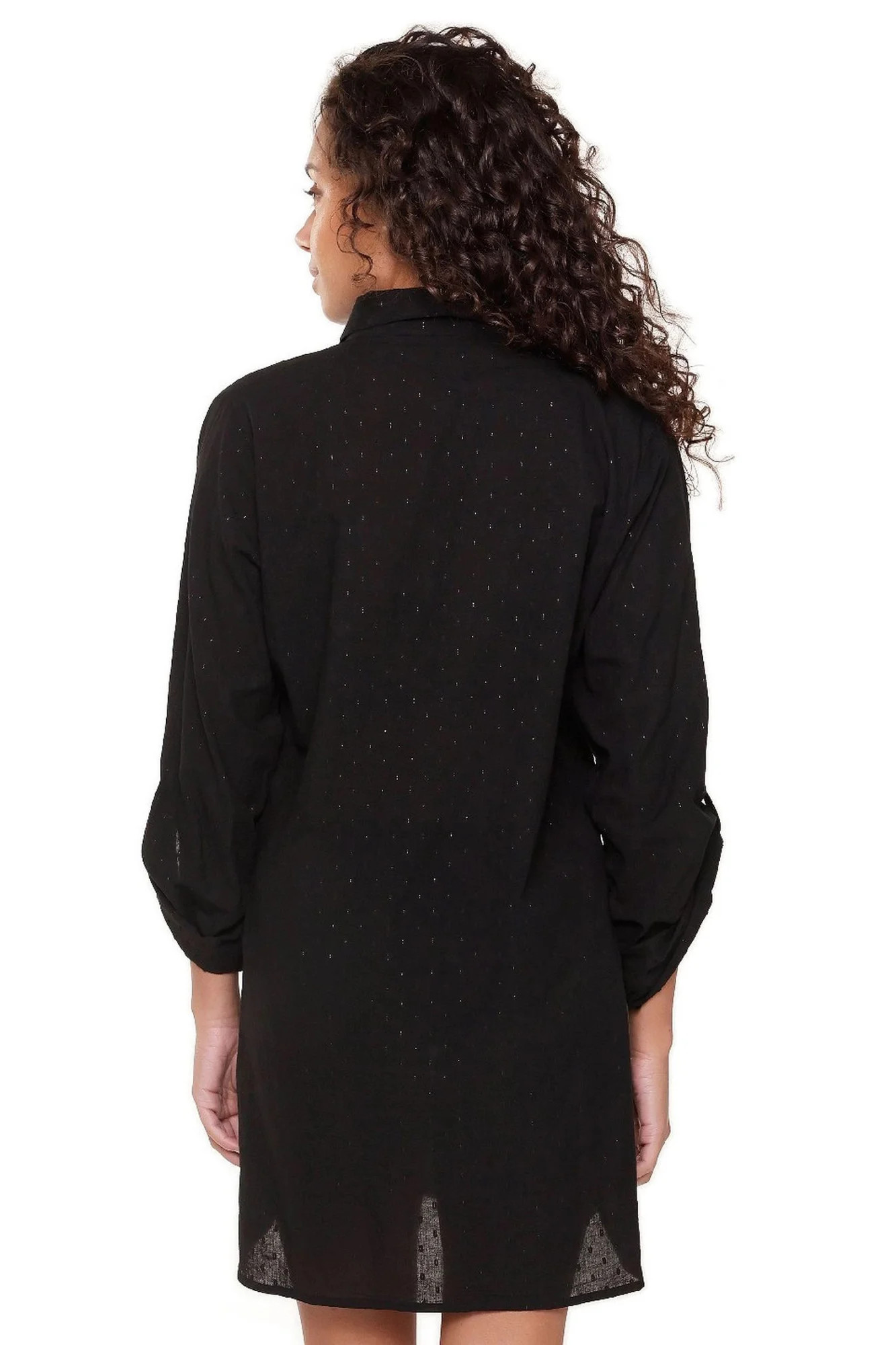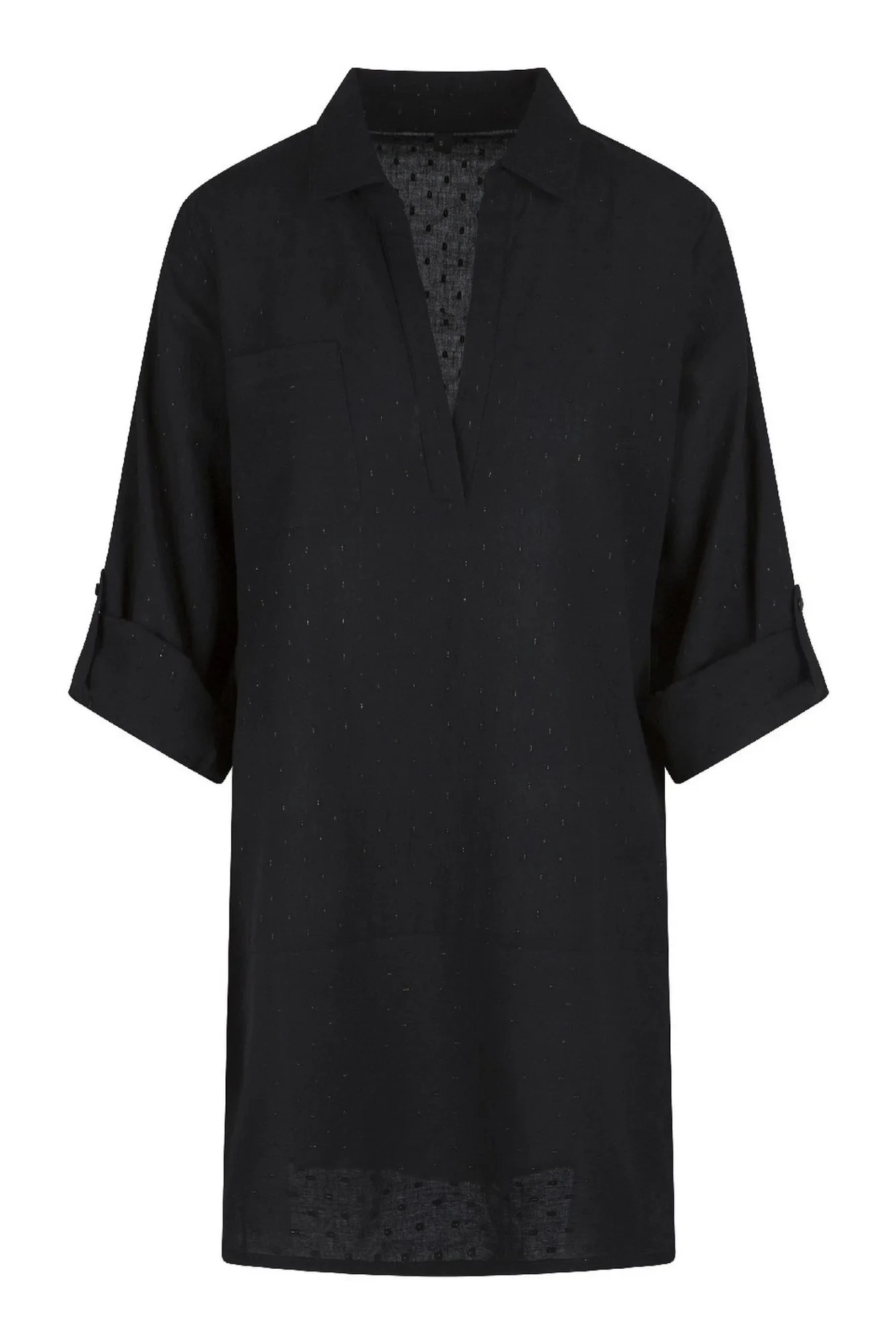 Plážové šaty 7229 black LingaDore - černá barva - z vysoce jakostní viskózy - tříčtvrteční rukávy - výstřih ve tvaru "V"