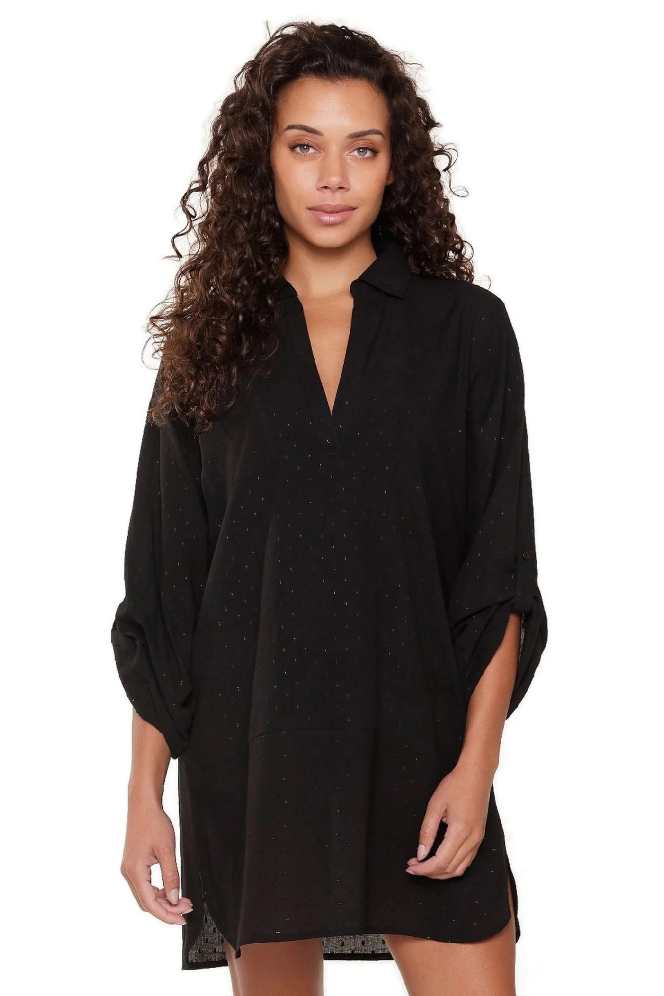 Plážové šaty 7229 black LingaDore - černá barva - z vysoce jakostní viskózy - tříčtvrteční rukávy - výstřih ve tvaru "V"Materiálové složení: 100% viskóza