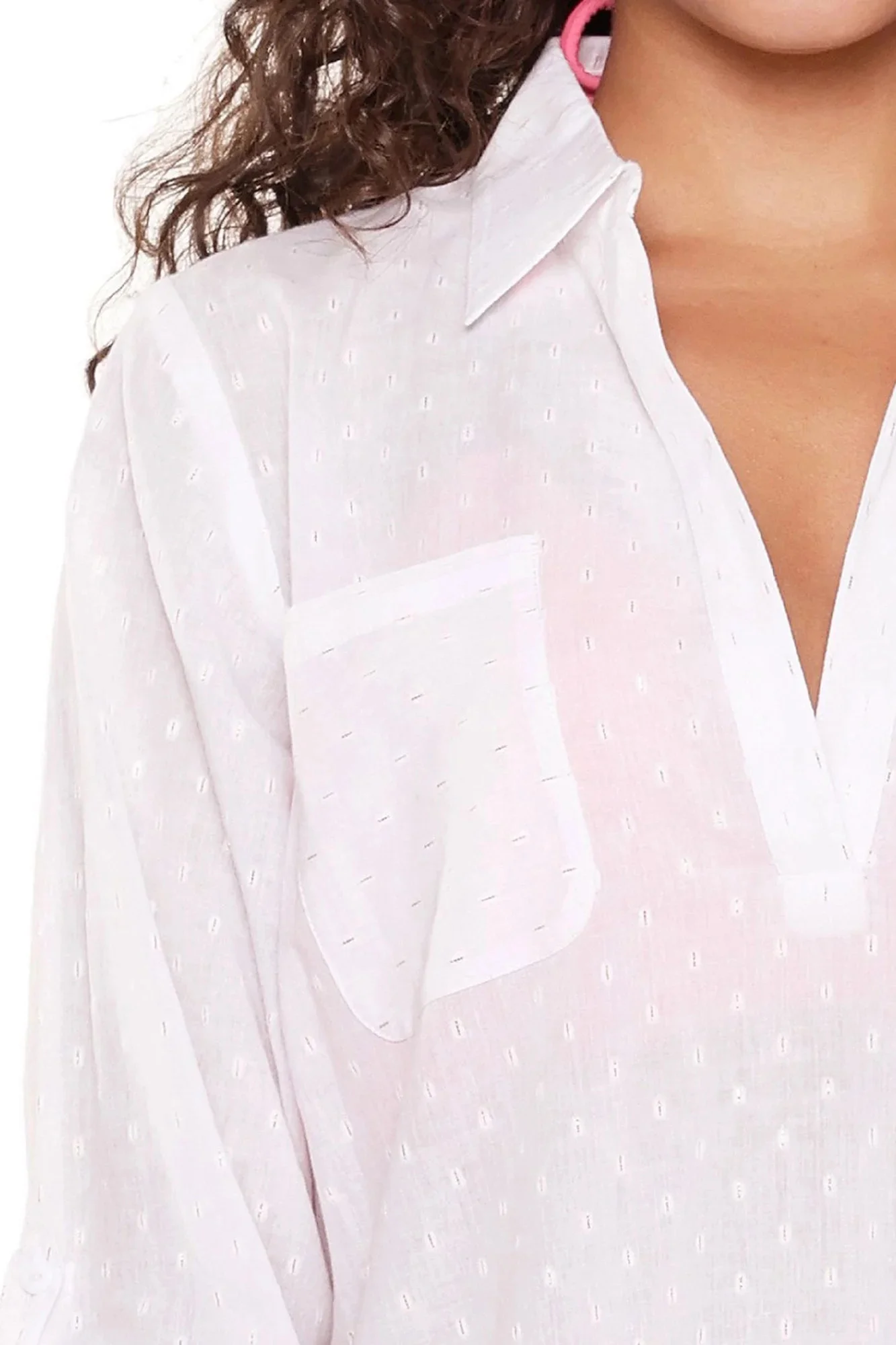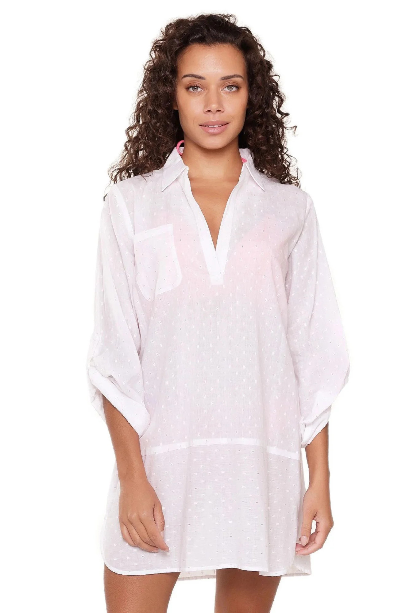 Plážové šaty 7229 white LingaDore - bílá barva - z vysoce jakostní viskózy - tříčtvrteční rukávy - výstřih ve tvaru "V"