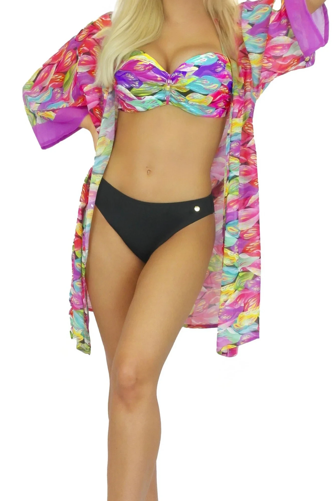 Plážové šaty 11D80SZ 32 SELF - z jemné vzdušné látky - se vzorem - tříčtvrteční rukávy - odolné proti UV záření - nemačkavý materiál
