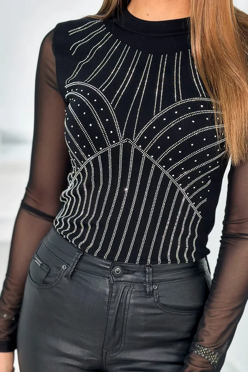 Představujeme naši elegantní halenku na tělo, která kombinuje pohodlí úpletu s jemností tylu. Tato černá halenka s tylovými rukávy je perfektní volbou pro ženy, které chtějí vypadat stylově a přitahovat pozornost na každém kroku. Pletený materiál body halenky zajišťuje pohodlí při nošení a dokonalé přizpůsobení postavě. Tylový rukáv dodává halence lehkost a jemnost a vytváří tak efektní spojení elegance a moderního designu. Halenka na tělo je ideální pro kombinování s různými styly, jak pro každodenní nošení, tak pro formálnější příležitosti. Černá barva jej činí univerzálním a umožňuje jej snadno sladit s jinými kusy oblečení. Jste připraveni na jedinečný vzhled? Černá tělová halenka s tylovými rukávy je návrhem pro ženy, které oceňují pohodlí a módní výraz. Buďte připraveni spojit styl a eleganci v jednom. Velikost je univerzální a bude vhodná pro ženy, které nosí velikost S, M nebo L.