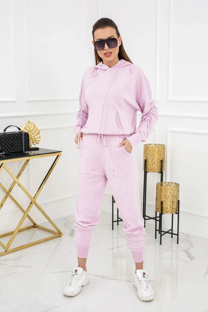 Jarní novinky v akci! Rozhodněte se pro pohodlnou, měkkou pletenou teplákovou soupravu, se kterou strávíte každý jeden večer v pohodlí. Souprava je dvoudílná, což vám okamžitě dává možnost nosit ji jak dohromady, v jednom kompletu, tak kombinovat např. s oblíbeným tričkem nebo džínami. Halenka s jemným žebrováním na zápěstí, ozdobným řasením na loktech a s kapucí. Kalhoty s elegantním, jemně volným střihem, ve sportovním stylu. V pase měkká guma a šňůrka na stažení v barvě tepláků. Složení: 50 % viskóza, 30 % polyester, 20 % nylon.
