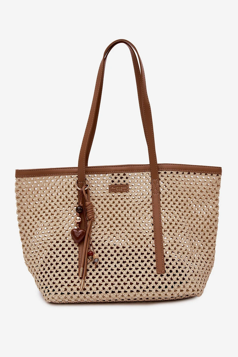 Pletená taška typu Shopper s přívěskem Béžová model 22111688 - Flora&Co