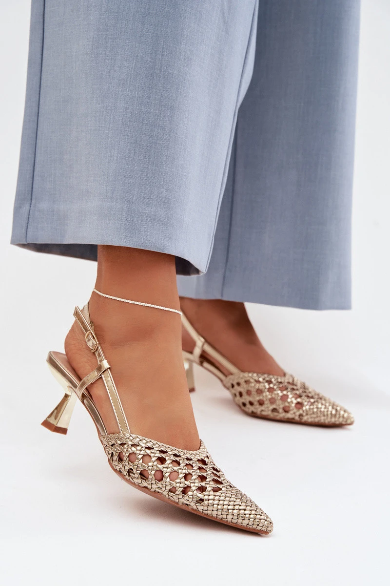 Dámské sandály vyrobené z dekorativního pletení jsou stylovým tipem na teplejší dny. Uzavřené, špičaté nosy zdůrazňují jemnou linii nohy a dodávají obuvi elegantní charakter. Model na tenkém podpatku jemně zeštíhluje siluetu, zajišťujíc ženský vzhled. Zapínání na přezku umožňuje přizpůsobení noze, zvyšuje pohodlí a stabilitu při chůzi. Tyto elegantní sandály skvěle doplní letní outfity – jak na každodenní nošení, tak na výjimečné příležitosti. Při výběru velikosti se řiďte tabulkou velikostí.