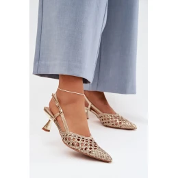 Pletené dámské sandály na podpatku zlaté model 22027857 - Boto