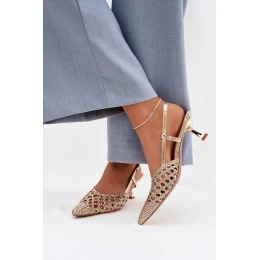 Pletené dámské sandály na podpatku zlaté Selinae
