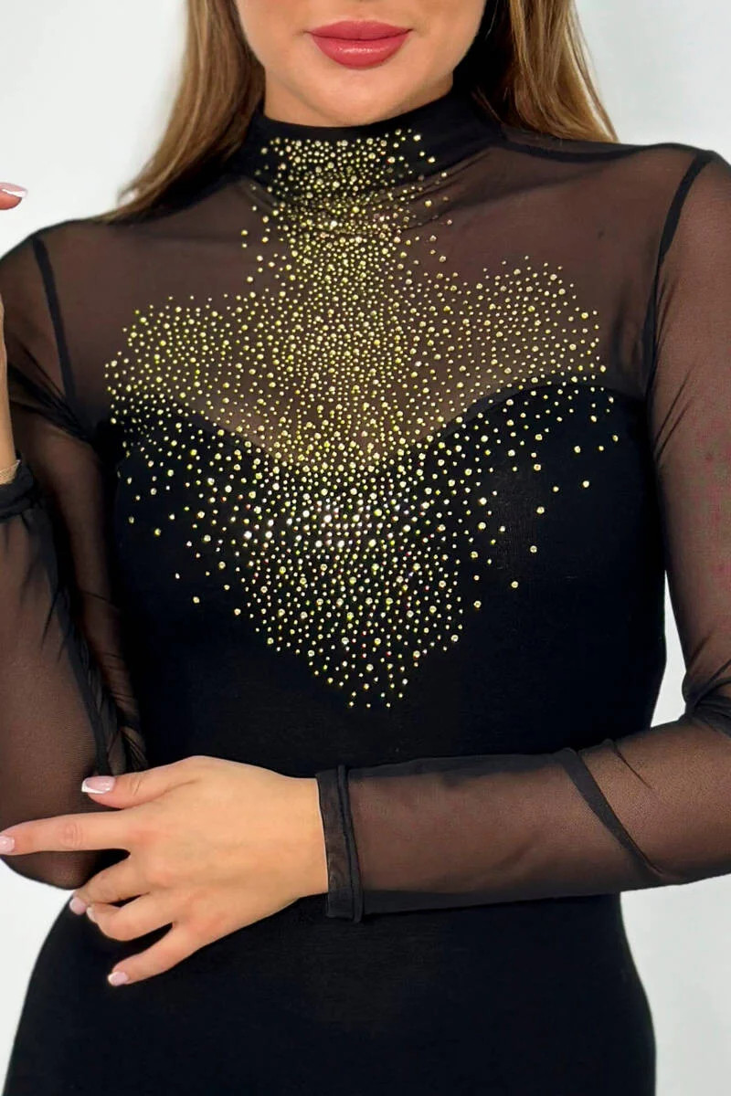 Přidání recenze k Pletené šaty s tylovými rukávy a výstřihem černý