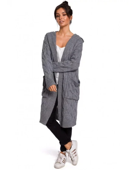 Pletený svetr s kapucí šedý model 20680763 - Moe