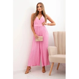 Plisovaná viskózová kombinéza světle růžová