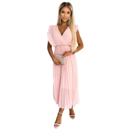 Přidání recenze k Plisované dámské šaty v broskvové barvě s výstřihem a zlatým řetízkem model 21819818 - numoco basic