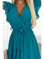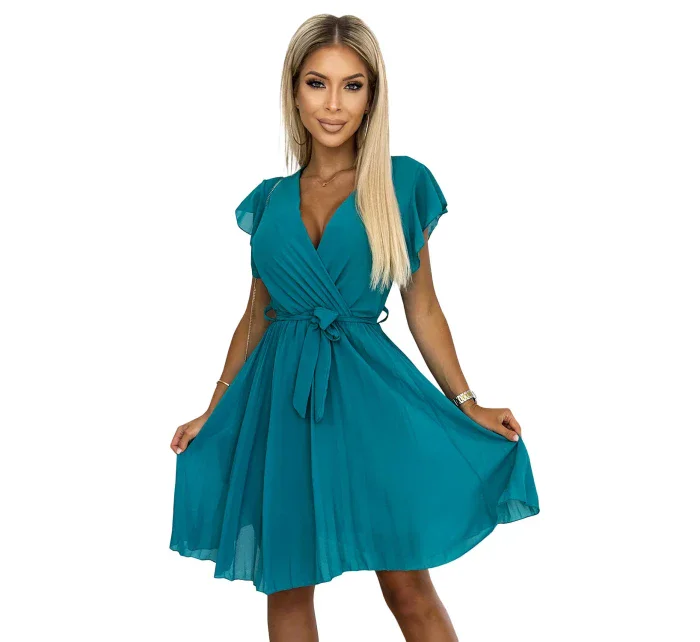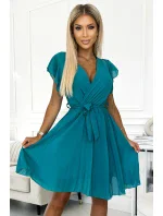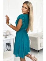 Plisované dámské šaty v mořské barvě s výstřihem a volánky model 18485670 - numoco basic