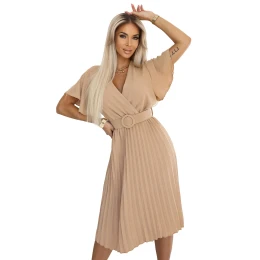 Plisované midi šaty s obálkovým výstřihem a širokým páskem model 21210352 - numoco basic