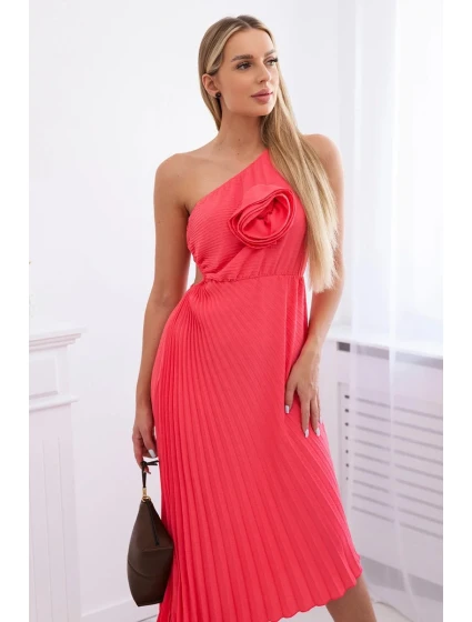 Plisované šaty s květinou růžový neon