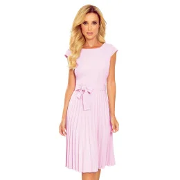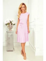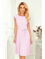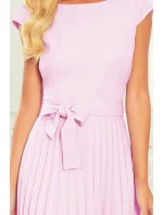 Lila - to jsou plisované dámské šaty s krátkými rukávy a páskem.