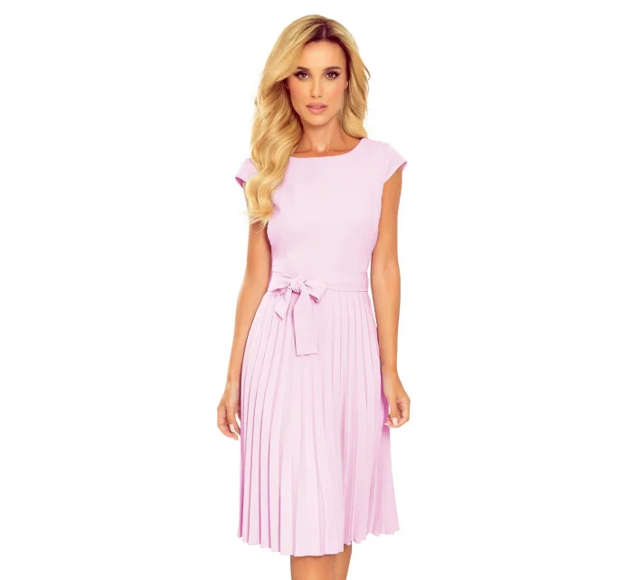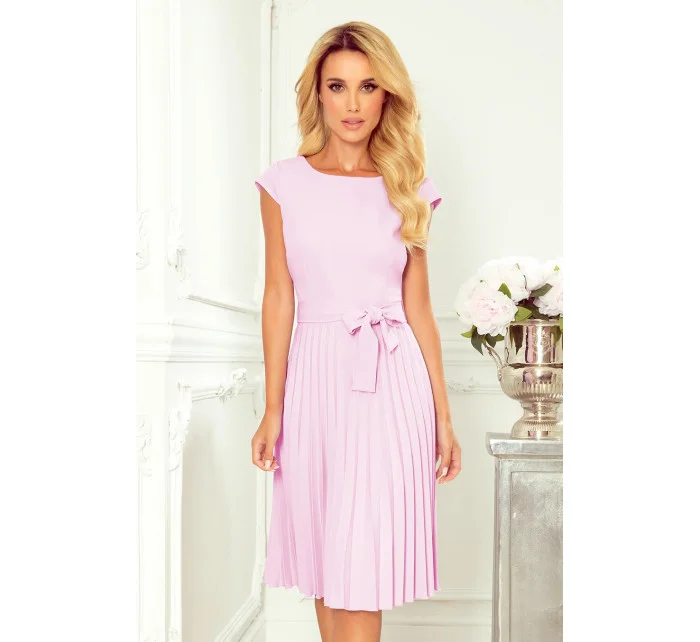 LILA Světle modré dámské plisované šaty s krátkými rukávy model 15433012 - numoco