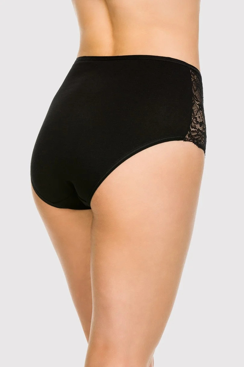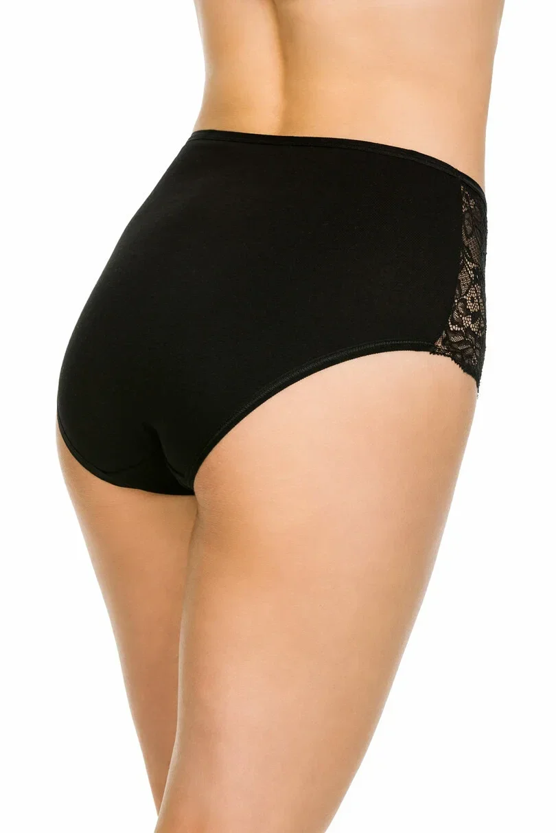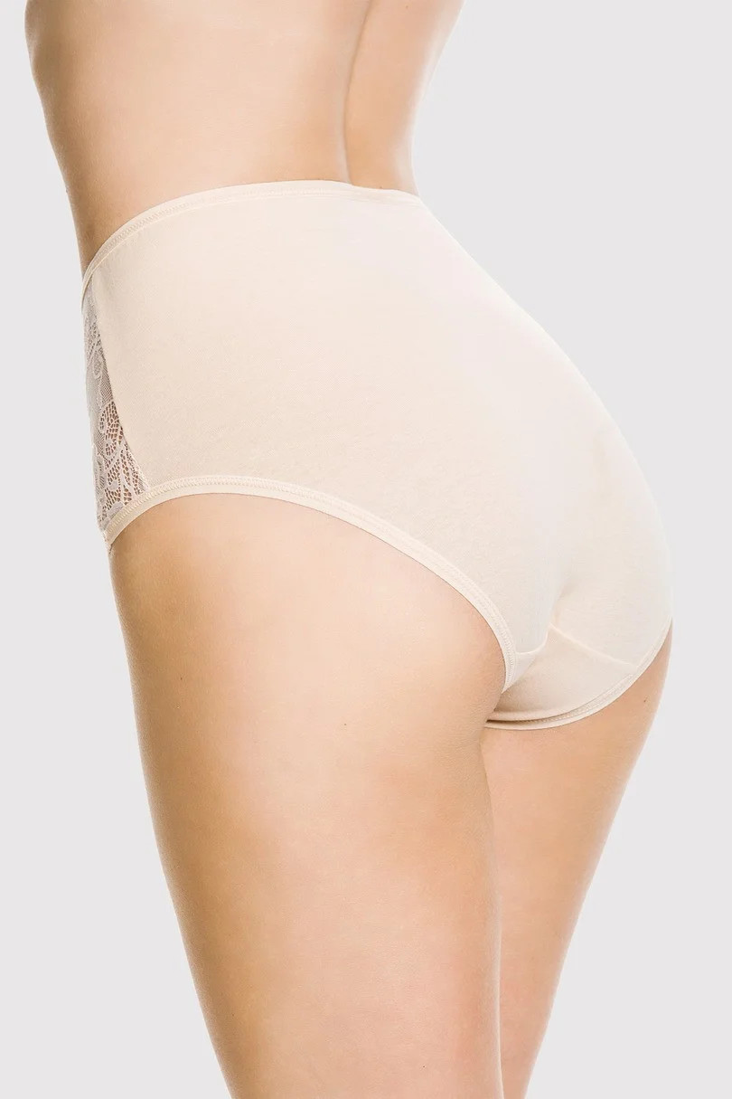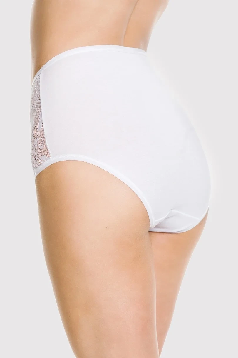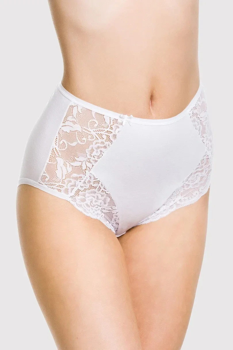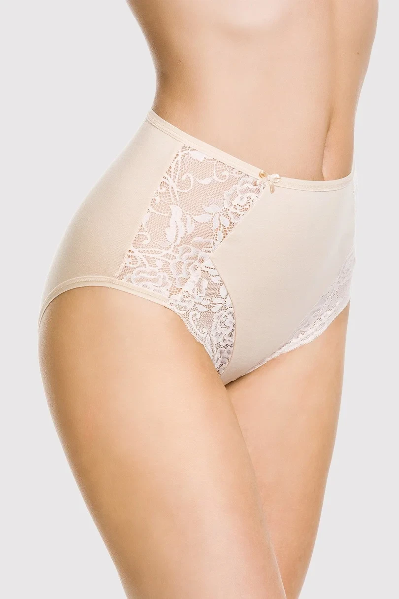 The panties are made of fine cotton,lace inserts on the hips and in the leg area.