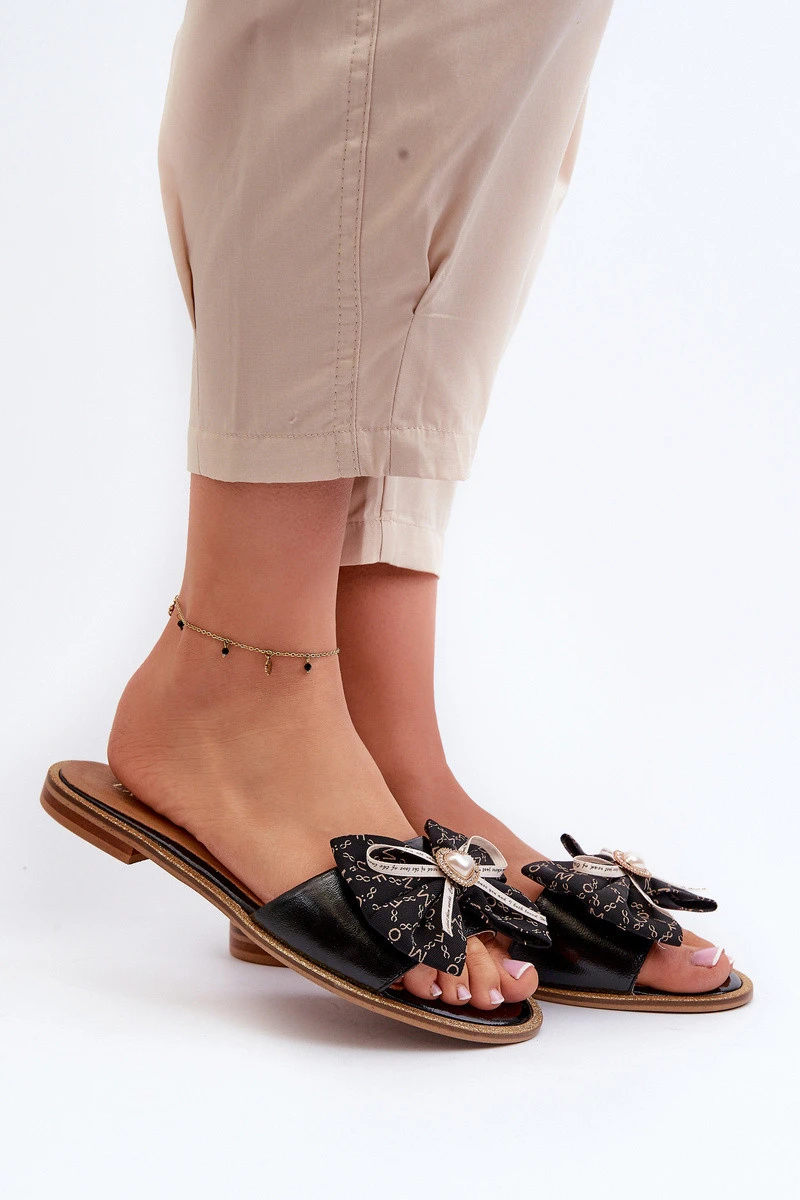 Přidání recenze k Ploché Dámské Kožené Žabky S Mašlí model 21661567 Černé - Laura Messi