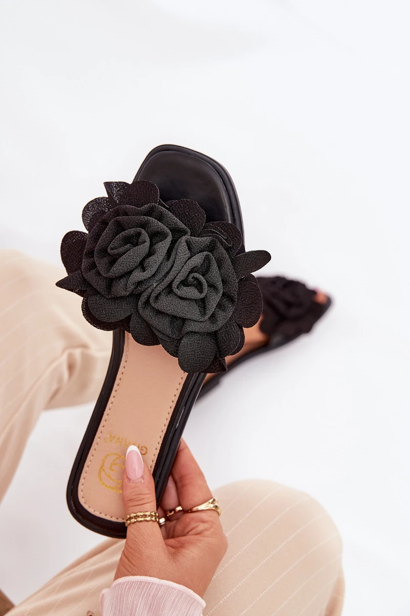 Stylové dámské pantofle vyrobené z eko kůže, usazené na ploché podrážce, které kombinují pohodlí s jemným, ženským akcentem. Přední část obuvi je zdobena půvabnými květinami, které jim dodávají výjimečný charakter. Ideální na teplé dny, tyto pantofle se skvěle kombinují s letními šaty, sukněmi nebo šortkami, vnášejíce do každé stylizace lehkost a svěžest. Při výběru velikosti se řiďte tabulkou velikostí.