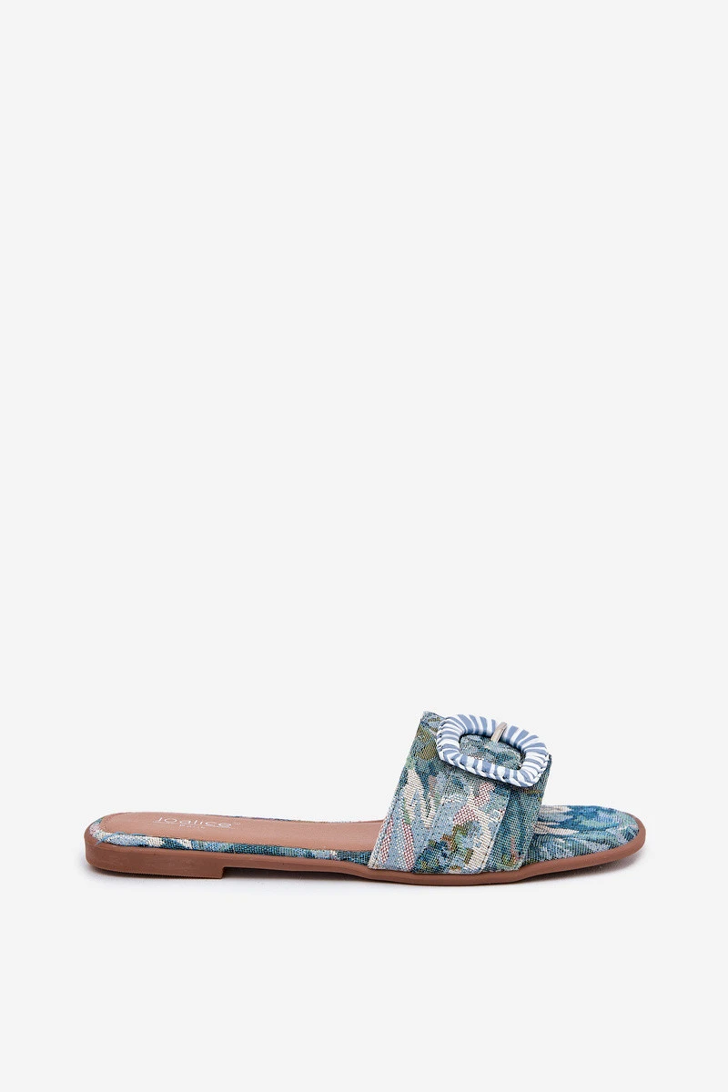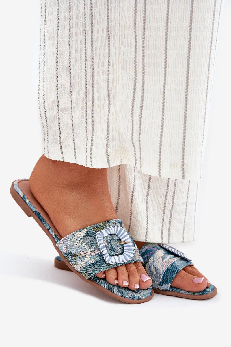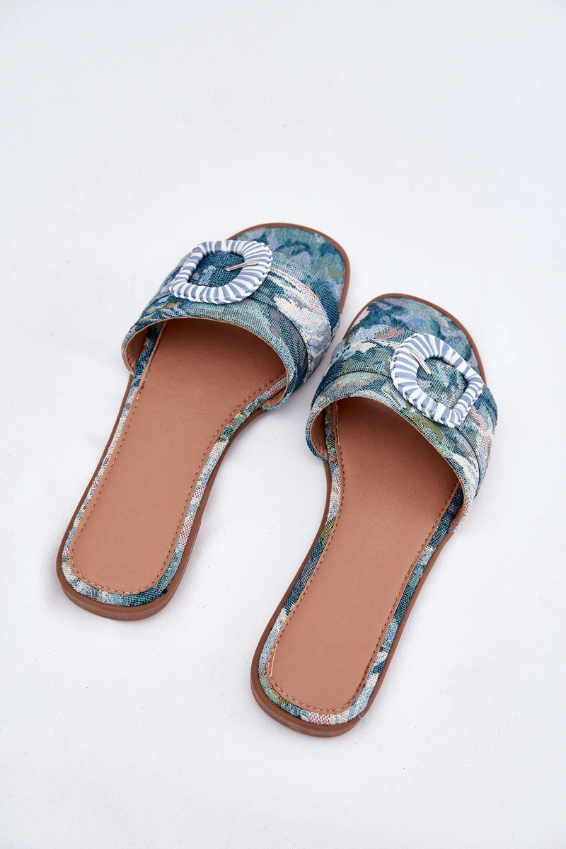 Ploché Dámské Pantofle S Ozdobnou Sponou Modré Clariola