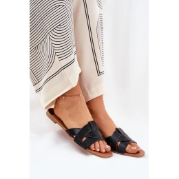 Ploché Dámské Pantofle S Proplétajícími Se Pásky Černé Selaenor