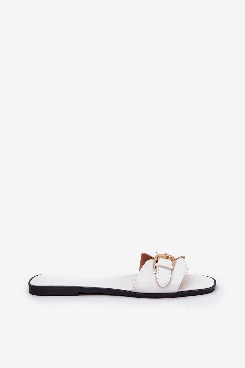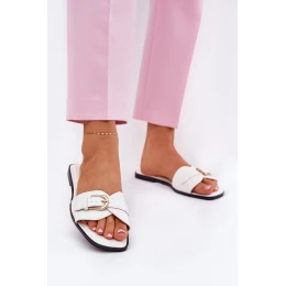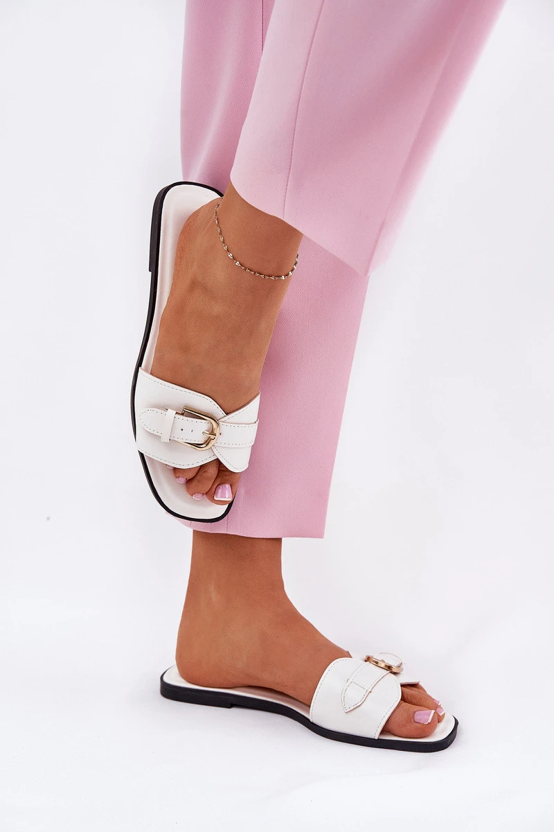 Ploché Dámské Pantofle Se Zlatou Přezkou Bílé model 21689698 - Boto