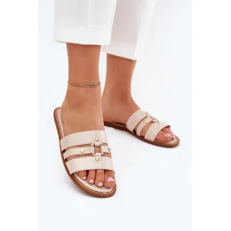 Ploché Dámské Pantofle Se Zlatým Detalem Béžové model 21700067 - Boto