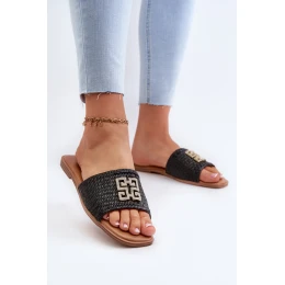 Ploché dámské žabky s pletením a ozdobou černé Omenna