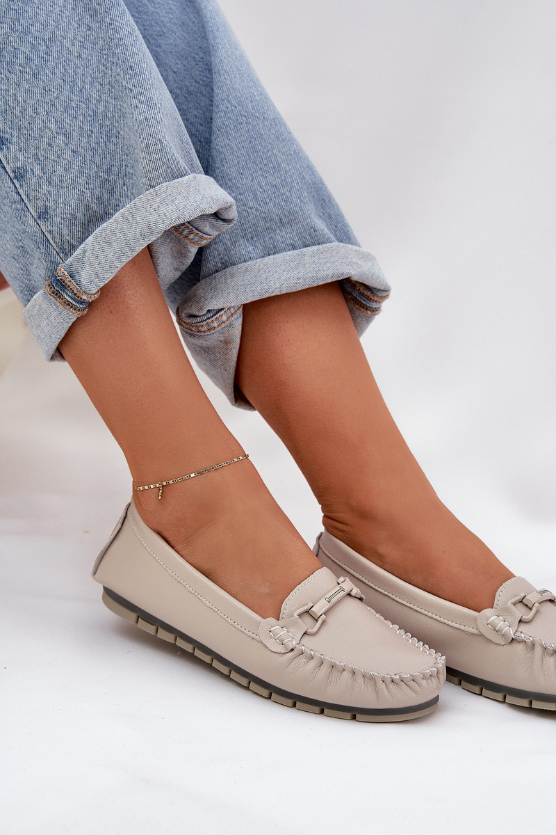 Ploché Kožené Mokasíny S Ozdobou model 21686035 Béžové - S.Barski