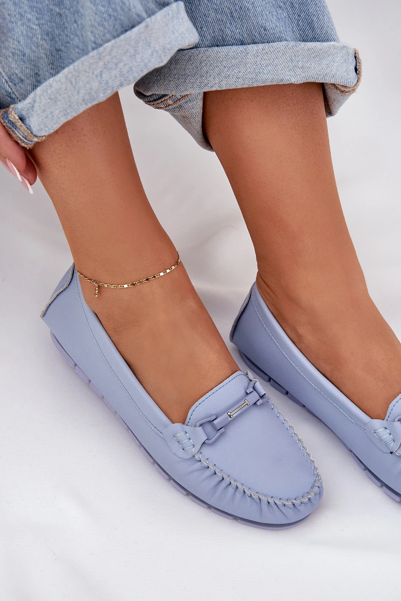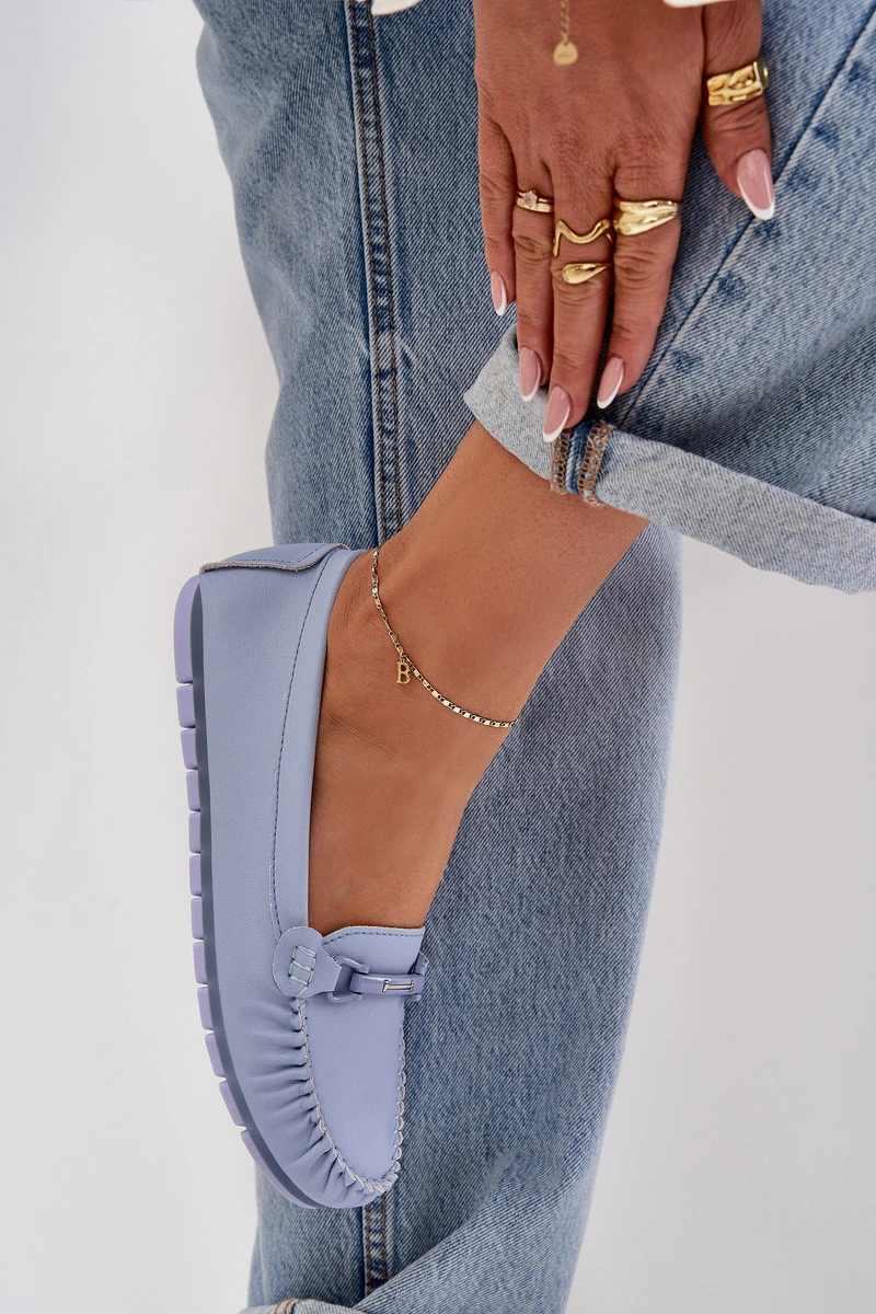 Ploché Kožené Mokasiny S Ozdobou S.Barski LR51-547 Modré