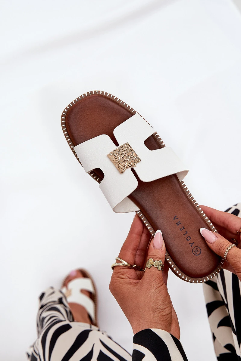 Ploché sandály s výřezy a ozdobou bílé Bohalis