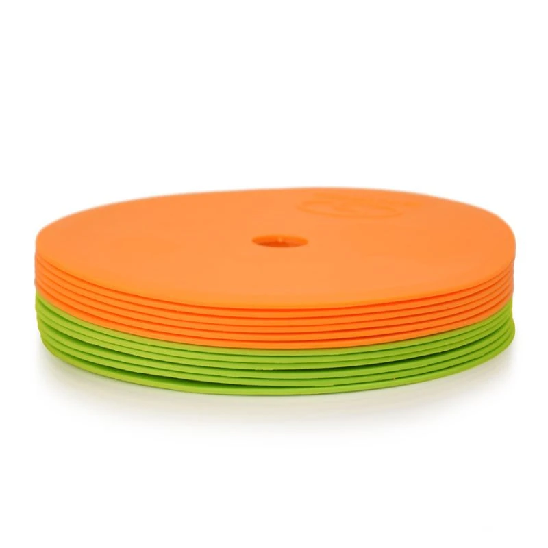 Znaczniki w formie okręgów świetnie sprawdzają się podczas treningów i zajęć sportowych. Dzięki antypoślizgowemu gumowemu tworzywu stabilnie trzymają się podłoża, niezależnie od nawierzchni – można je stosować na parkiecie, płytkach, betonie, tartanie czy trawie. Jaskrawy kolor gwarantuje doskonałą widoczność w każdych warunkach.