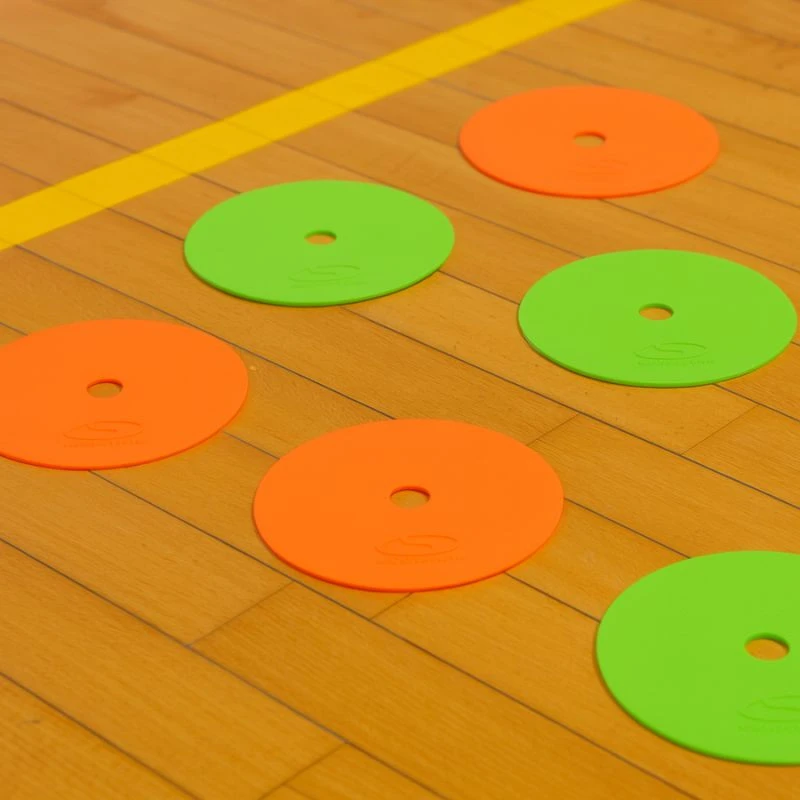 Znaczniki w formie okręgów świetnie sprawdzają się podczas treningów i zajęć sportowych. Dzięki antypoślizgowemu gumowemu tworzywu stabilnie trzymają się podłoża, niezależnie od nawierzchni – można je stosować na parkiecie, płytkach, betonie, tartanie czy trawie. Jaskrawy kolor gwarantuje doskonałą widoczność w każdych warunkach.