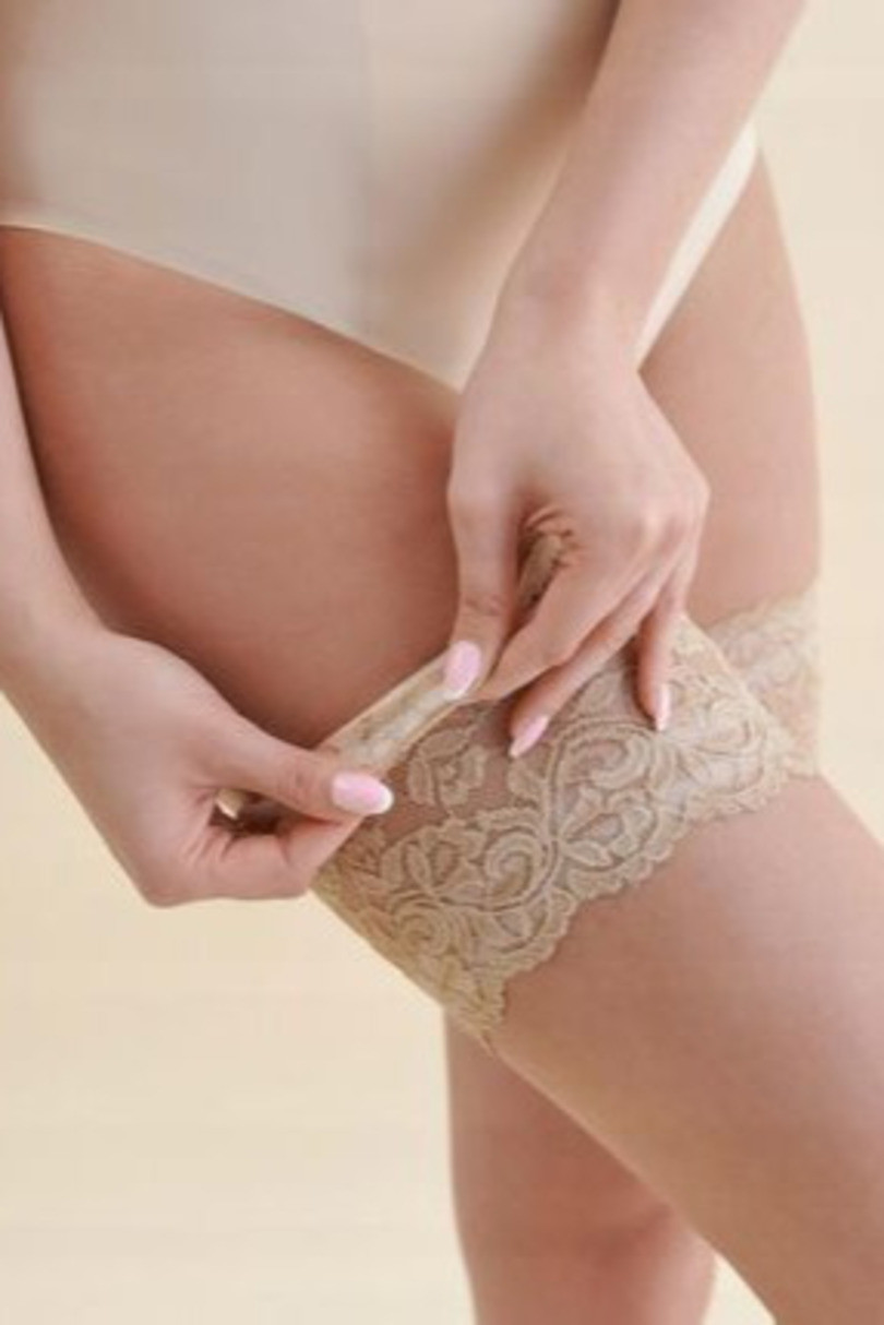 Samodržící ozdobný stehenní pásek je sexy alternativou punčochových kalhot nebo punčoch pro horké letní dny.