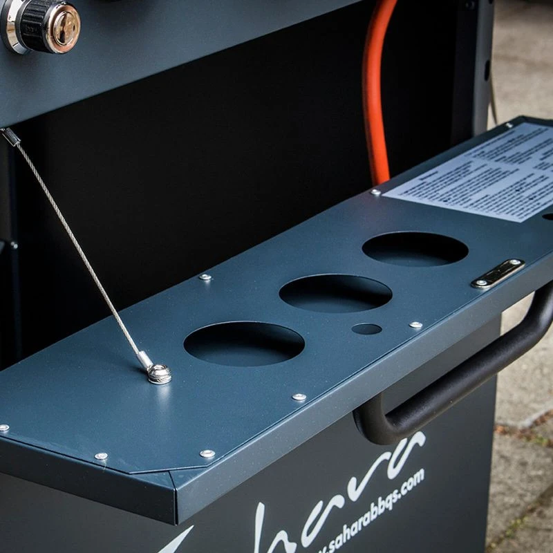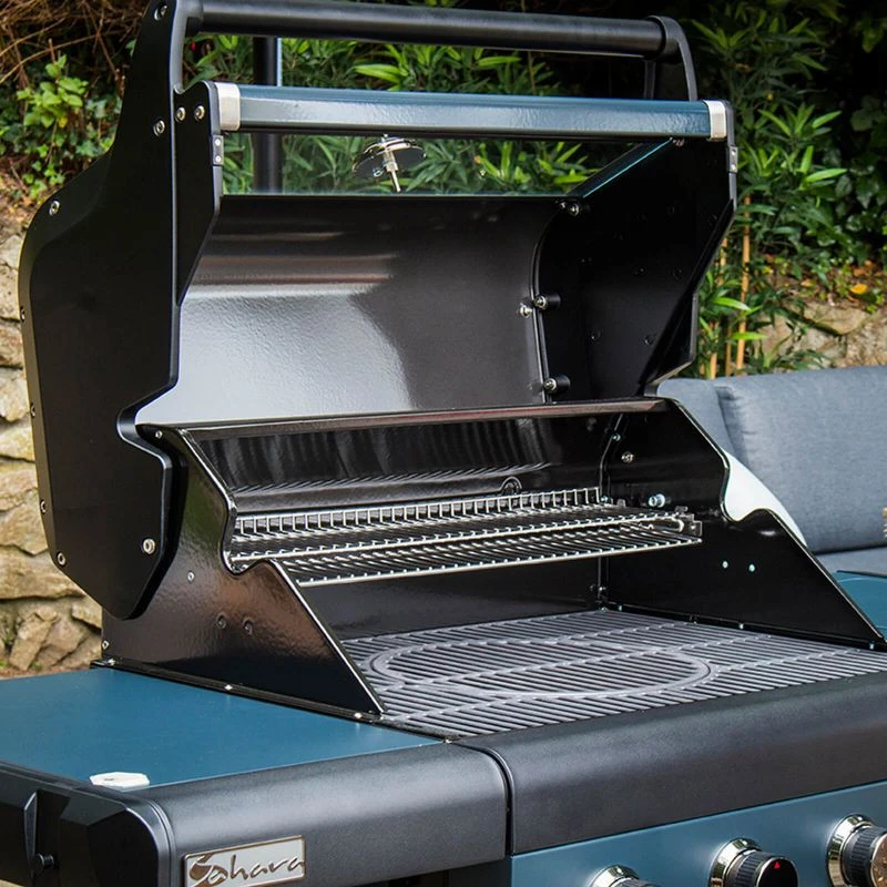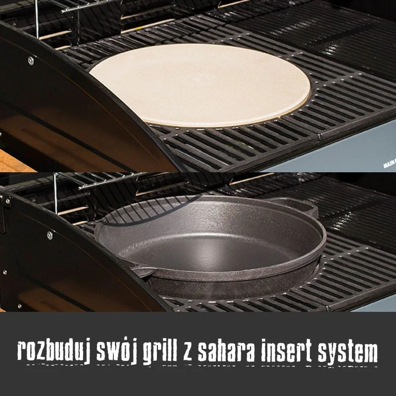 Pokud hledáte robustní a odolný gril, který můžete umístit na terasu, balkon nebo na zahradu, je pro vás vhodný model Sahara X450. Gril je ideální pro rodinné oslavy nebo setkání s přáteli, protože umožňuje rychlou přípravu pokrmů pro více osob bez nutnosti dlouhého a těžkopádného uvádění do provozu. Gril je estetický a kompaktní. Technické údaje: Výkon: 20,25 kW Rozměry: 67 x 152 x 124 cm (délka x šířka x výška) Počet hořáků: 4 nerezové Grilovací plocha: 3400 cm2 Hmotnost: 71 kg Zapalování: piezoelektrické Materiál: předozinkovaná ocel Plynová hadice a regulátor součástí balení Záruka: 10 let