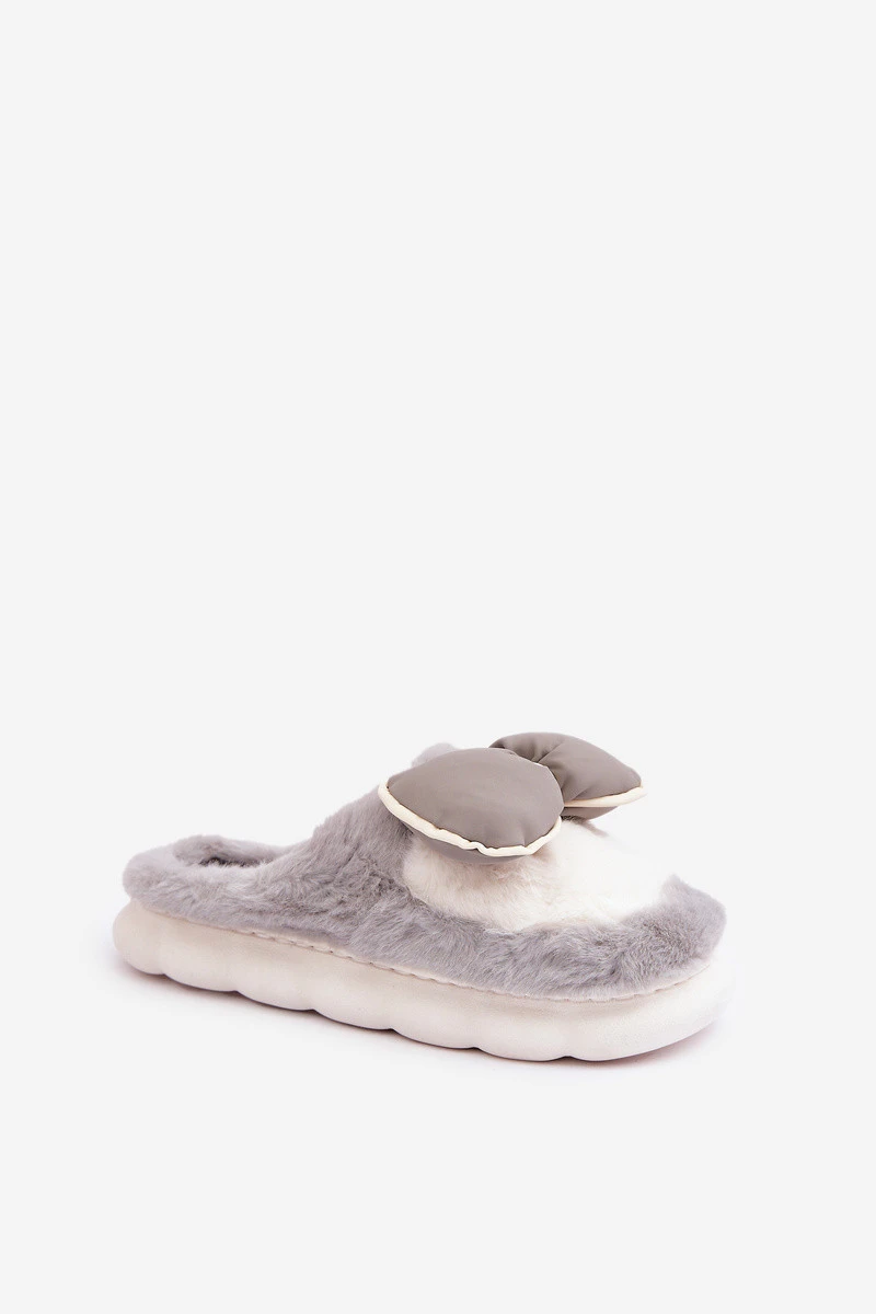 Plyšové Pantofle S Mašlí Šedé Grilis