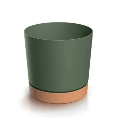 Květináč TUBO PM PINE GREEN 24 cm s válcovitým tvarem má elegantní matný povrch a podstavec s integrovanými dřevěnými třískami v základně, který přitahuje pozornost a dodává mu jedinečný charakter. Díky klasickému tvaru a univerzální barvě se skvěle hodí do mnoha moderních aranžmá a vnáší designový nádech do interiérů nebo otevřených prostor na zahradě či terase.